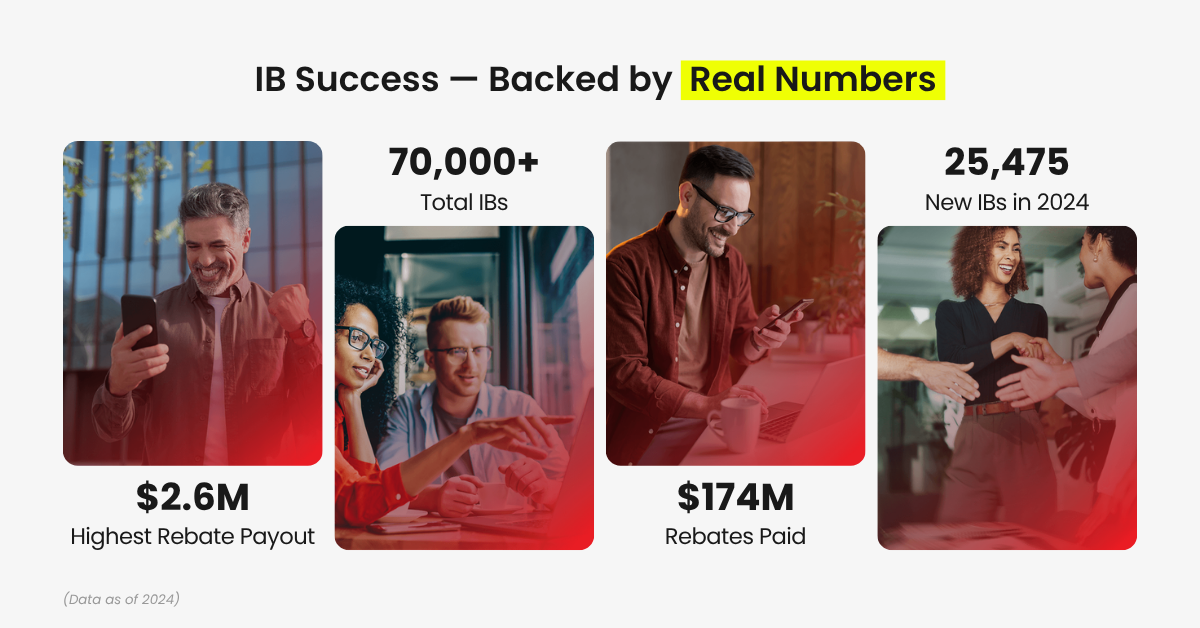 Over time, both the number of IBs and the total rebates paid have grown rapidly – reflecting the strength and sustainability of our model. Today, our global IB community continues to expand, supported by a system designed for long-term growth.