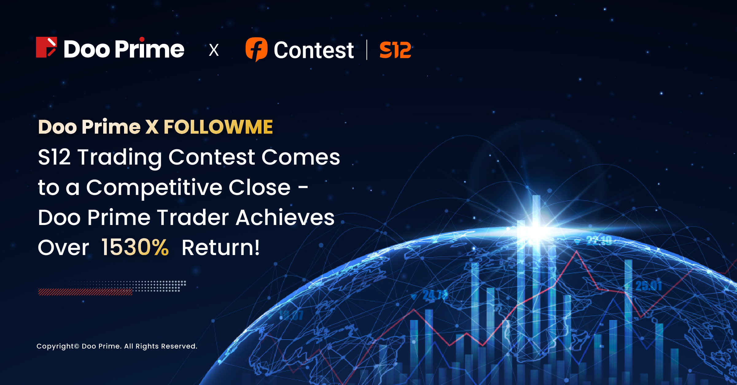 Spanning three months, the latest competition featured Doo Prime as the diamond sponsor of the FOLLOWME S12 trading competition, offering additional rewards to the top three performers in the monthly rankings. These elite traders had the chance to share a bonus exceeding USD 500 for the respective month.