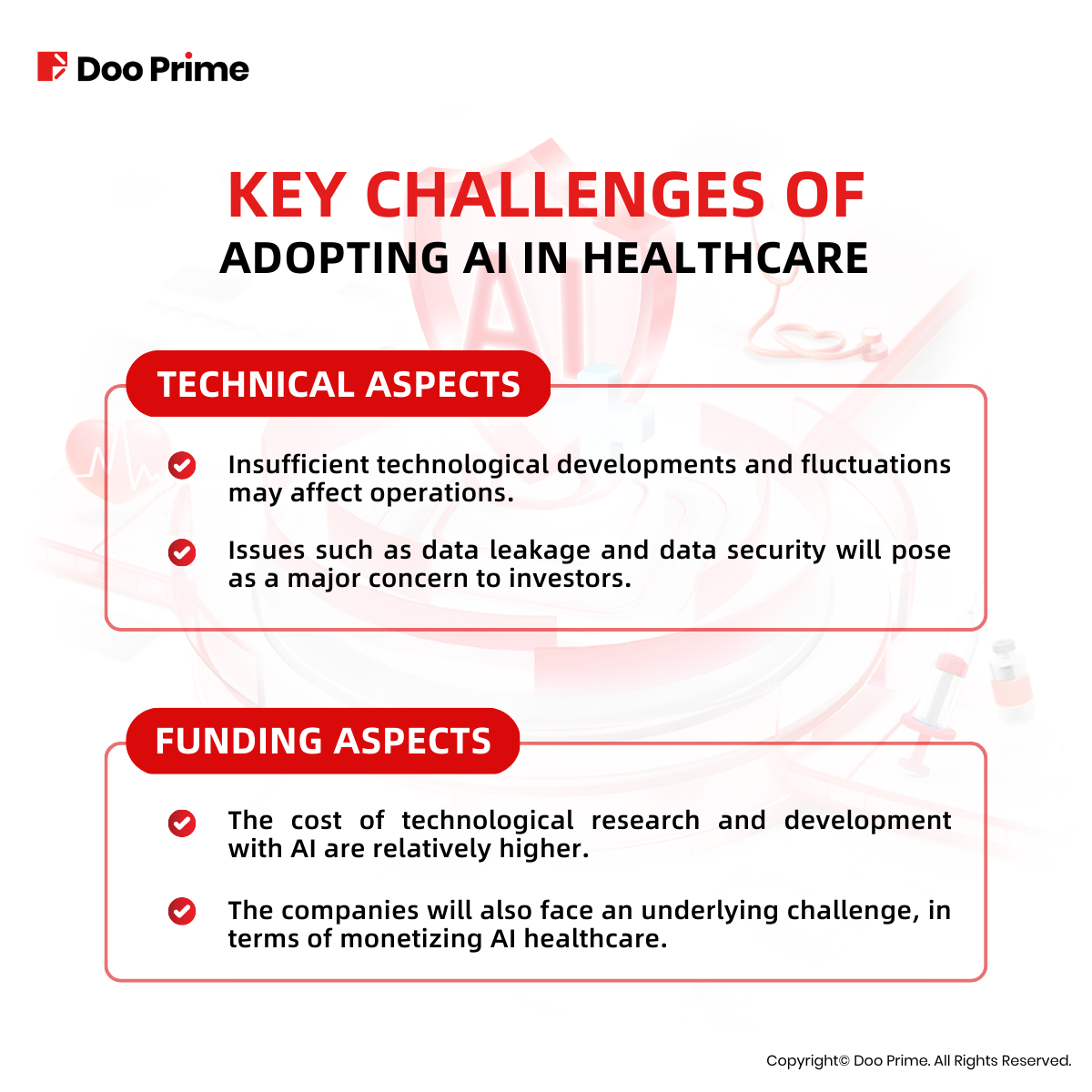 In addition to the competitive risks faced by multiple industries, there are also technical concerns involved. While AI advancements can certainly elevate the medical industry to greater heights, many still require research and improvements. Insufficient technological developments and fluctuations may affect operations.