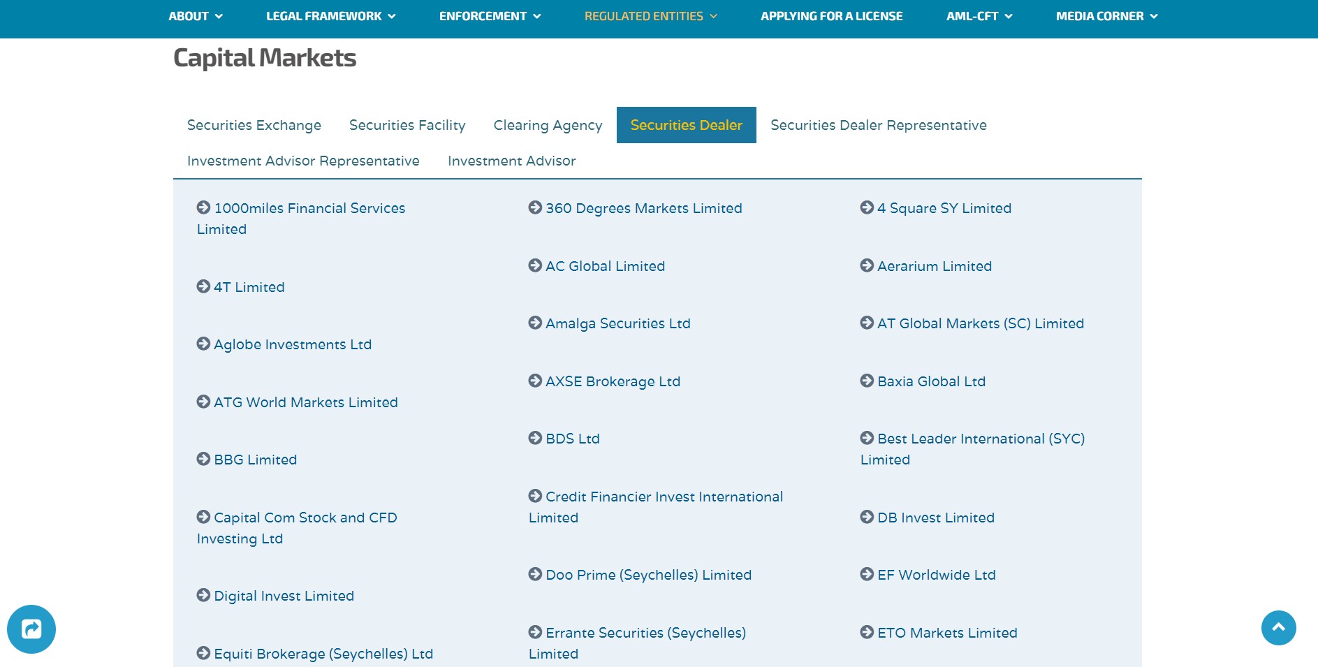 A properly certified securities dealer will have these legal details shown and detailed on the Seychelles FSA Register when one performs the check.