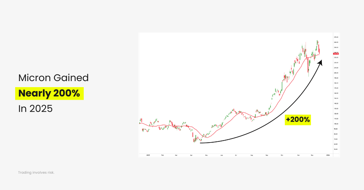 Micron (MU) gained around 200% from its 2025 lows, marking one of the stronger stock performances of the year.