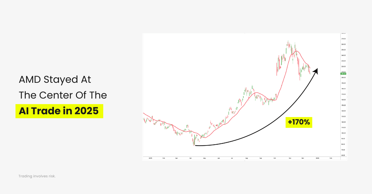 AMD benefited from its positioning across data centers, AI acceleration, and high-performance computing. While competition in the chip space remained intense, AMD managed to stay relevant within the AI narrative and avoided the sharp sentiment swings seen in more speculative names.
