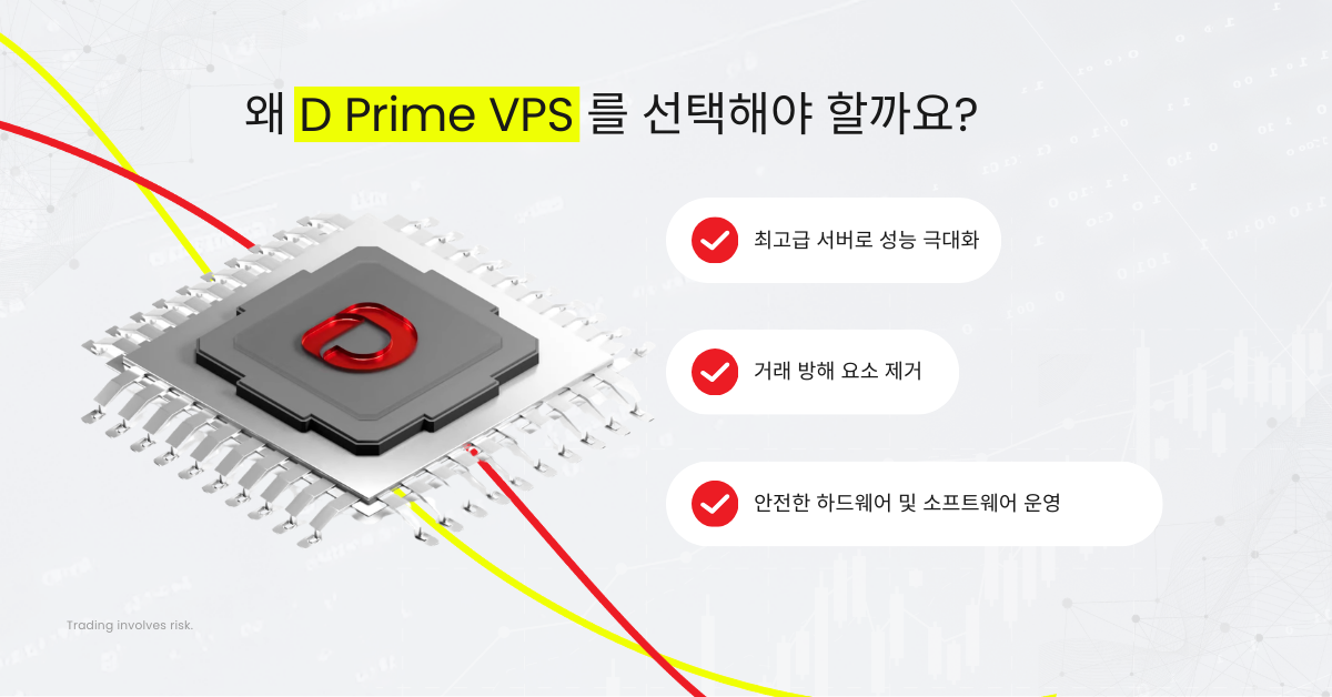 이러한 문제들은 심각하게 들릴 수 있지만 VPS 서버를 활용하면 효과적으로 해결할 수 있습니다. 더 나아가 D Prime에서는 무료 VPS 호스팅을 제공하여 추가 비용 없이 더 빠르고 안정적이며 안전한 거래 환경을 누릴 수 있습니다.