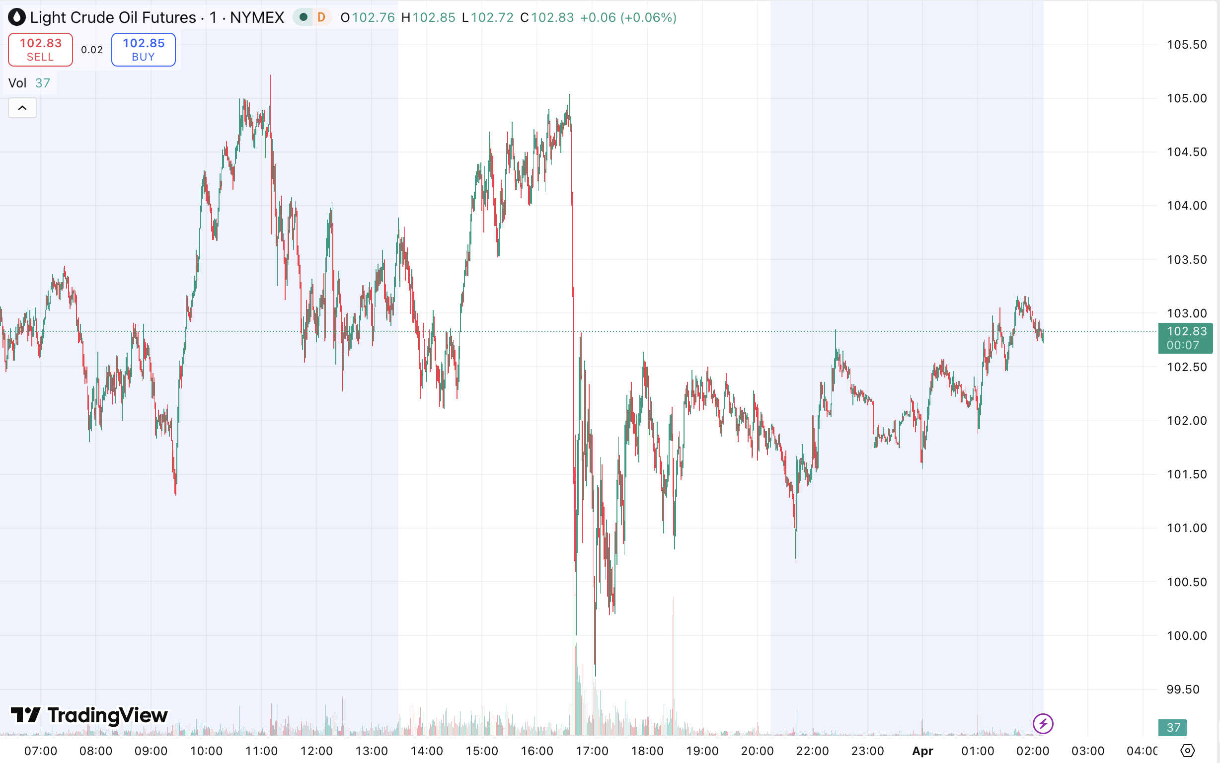 技术面上,日线级别上,原油整体仍处于上升趋势之中,但价格在逼近 106 美元附近后动能有所减弱,短期呈现高位震荡格局。上方关键阻力位关注 108 美元区域压力(前期结构位)与心理关口附近的抛压,而下方重要支撑位位于 100 美元整数关口,一旦跌破可能打开进一步调整空间。 4 小时级别来看,价格已出现明显超买迹象,动能指标逐步回落,短期存在技术性修正需求。若无法有效突破高点区域,油价或进入宽幅震荡区间,波动性显著加大。
