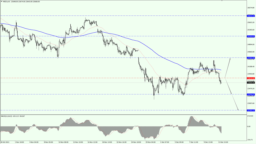 HK50 今日关注 23818 一线,如果 HK50 力度上破 23818 一线,并站稳于 23818 一线上方,届时关注 24469 一线的压制力度;如果 HK50 稳定运行于 23818 一线下方,届时依旧关注 23294 一线的支撑力度。