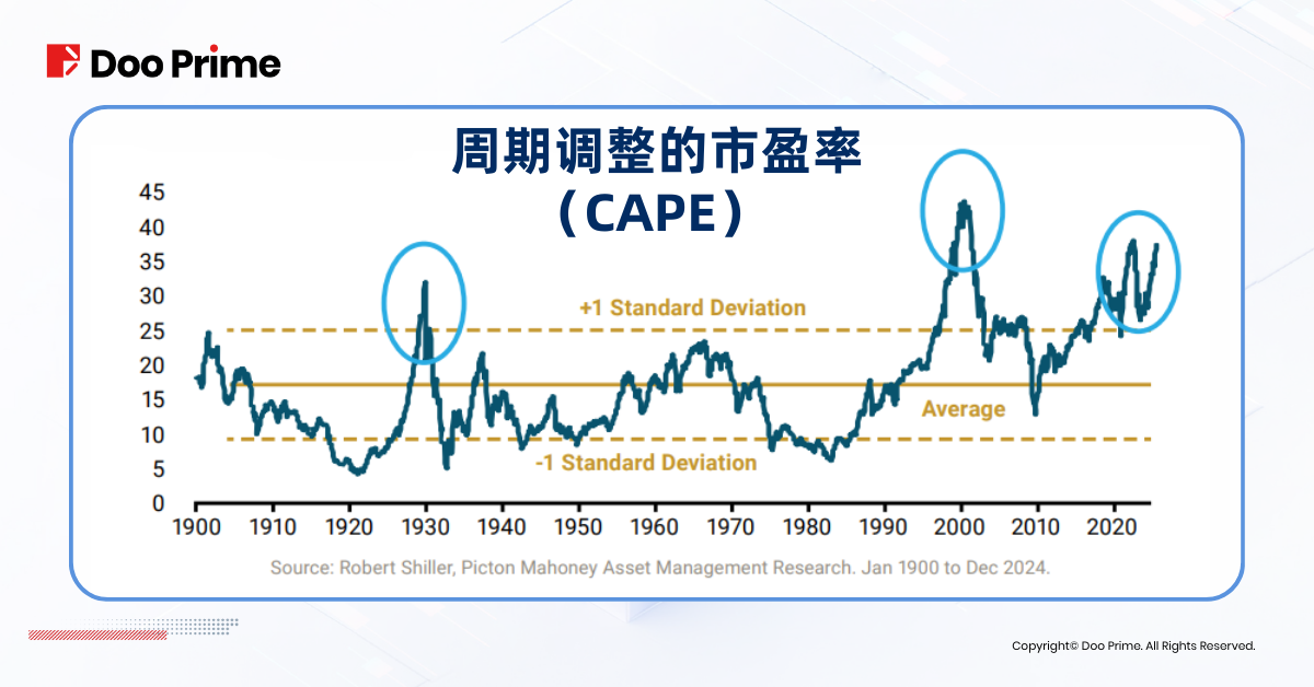 当前 CAPE 达到了 38 倍,远高于历史平均的 18 倍,表明美国股市的整体估值极高。即便市场能够软着陆,当前的估值起点已大幅超过历史上美联储宽松周期开始时的水平,意味着目前市场的价格已经处于相对较高的位置,未来可能面临更高的风险或调整压力。