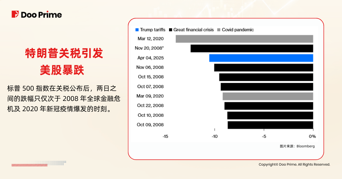 4 月 4 日,标普 500 指数再次大跌 5.97%,创下自 2020 年 3 月以来最大的单日跌幅。