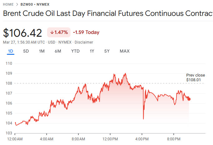 特朗普﹕延长对伊朗谈判最后期限至 4 月 6 日,油价突破每桶 108 美元