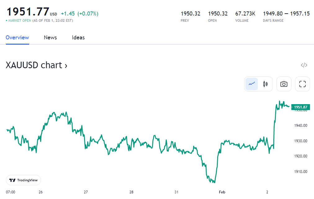 现货黄金跌幅一度扩大至 0.3%,下逼 1920 美元,随后转涨 0.8%,并接连重上 1930 和 1940 美元两道整数位,目前更是突破 1950 美元,创下 11 个月以来新高,一夜暴涨近 30 美元。