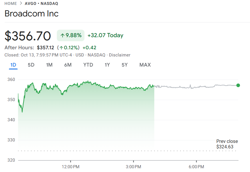 博通股价周一飙升近 10%,公司宣布与 OpenAI 达成多年期战略合作,将共同开发并部署 10 千兆瓦规模的定制人工智慧加速器。根据协议,OpenAI 将负责设计加速器,博通负责开发与部署。双方已签署初步条款清单,计划部署整合了人工智慧加速器与博通网络解决方案的机架,预计于 2026 年下半年启动,并在 2029 年底前完成。