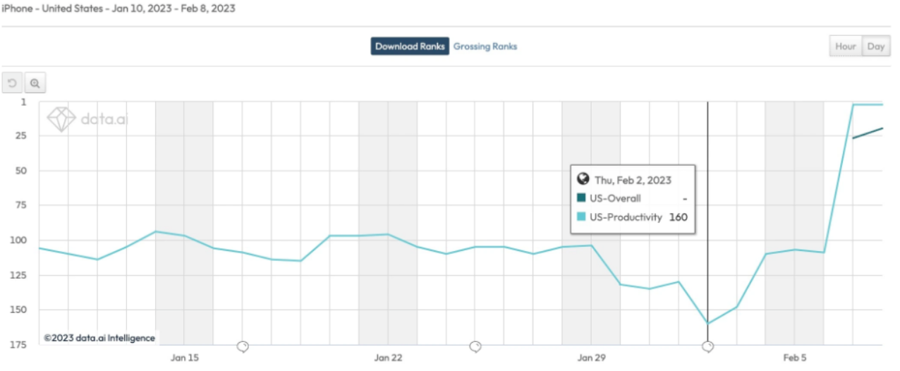 搜索引擎更新的消息一出,必应在全球范围内的新下载量增长了 10 倍,在美国的 App Store 所有免费 iPhone 应用程序中排名第 12。截至上周,必应在美国应用商店的办公类应用排行榜上排名仅在第 160 位,然而现在它已跃升为第二名。