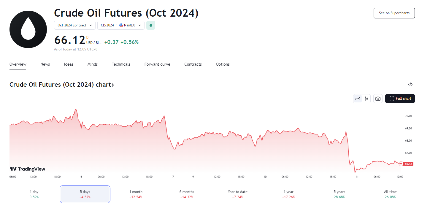 OPEC 再度下调石油需求预期,原油市场的供应充足、投机性卖空强势,油价暴跌至近三年最低,美油盘中暴跌 5%,布油失守 70 美元。截止收盘,WTI 10 月原油期货收跌 2.96 美元,跌幅 4.31%,报 65.75 美元/桶;布伦特 10 月原油期货收跌 2.65 美元,跌 3.69%,报 69.19 美元/桶。