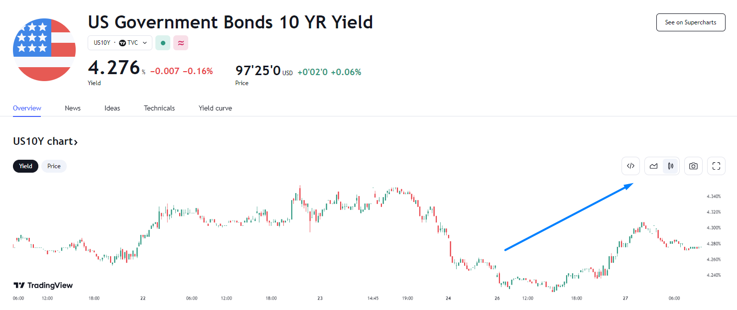 拍卖结果出炉后,10 年期美债收益率上涨至日内高点,拉升至 4.30%。