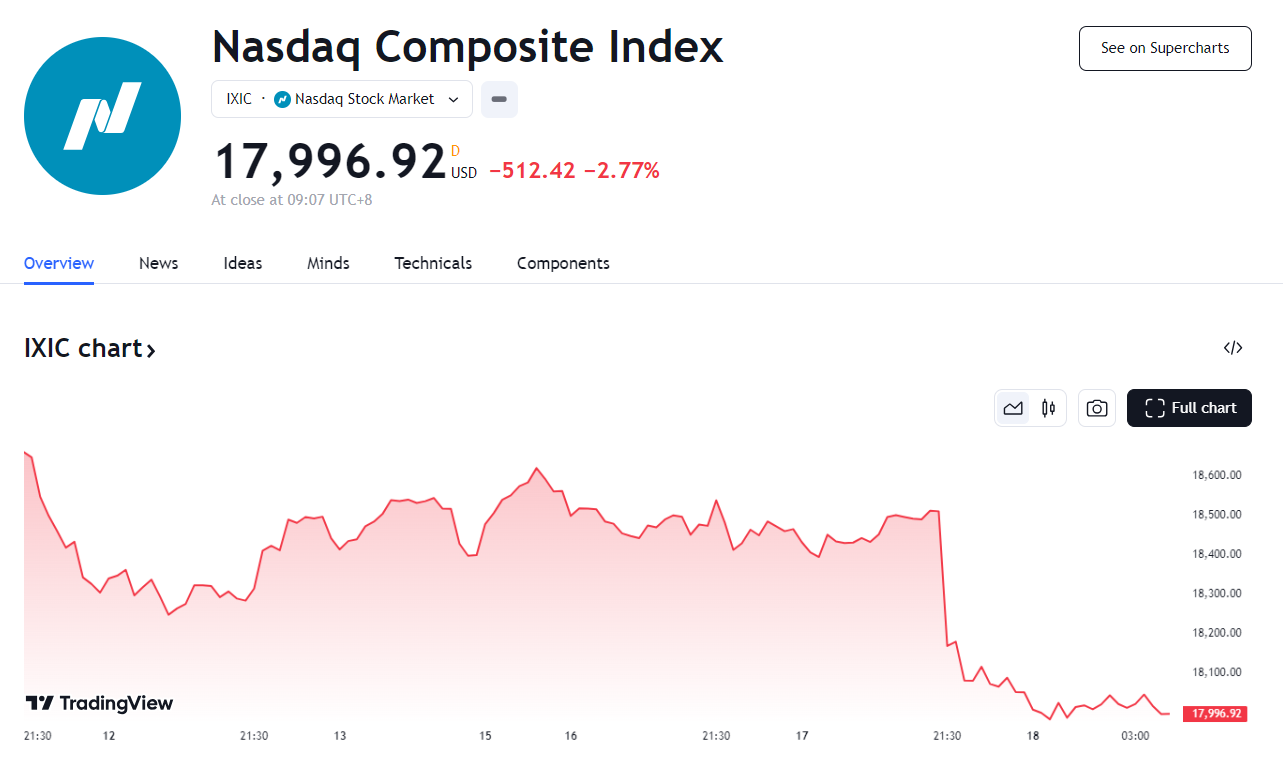 纳指暴跌逾 500 点