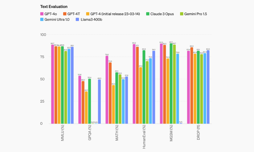- 速度更快:GPT-4o 的速度是上一代的 5 倍,语音延迟大幅改善,可以在 232 毫秒内回应音频输入,平均为 320 毫秒,接近人类对话的反应时间。这意味用户可以和 GPT-4o 实时对话、甚至直接视频在线解答各种问题。