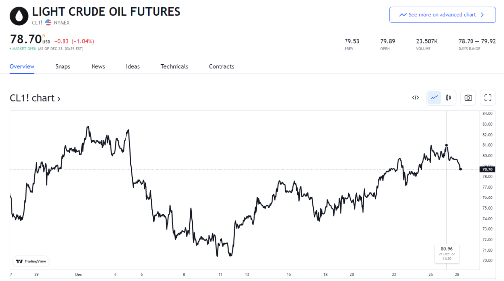 • 12 月 23 日,普京表示将于 26 日或 27 日签署一项针对西方对俄罗斯石油限价的应对法令。同日,俄罗斯副总理兼能源部长诺瓦克表示,俄罗斯联邦政府将禁止向遵守西方国家规定价格上限的国家供应石油和石油产品,并可能在明年年初每天减产石油 50 万至 70 万桶,相当于俄罗斯将减产 5% 到 7%。 诺瓦克警告减产当天,国际原油期货盘中一度涨超 3%,最终收创三周来新高。