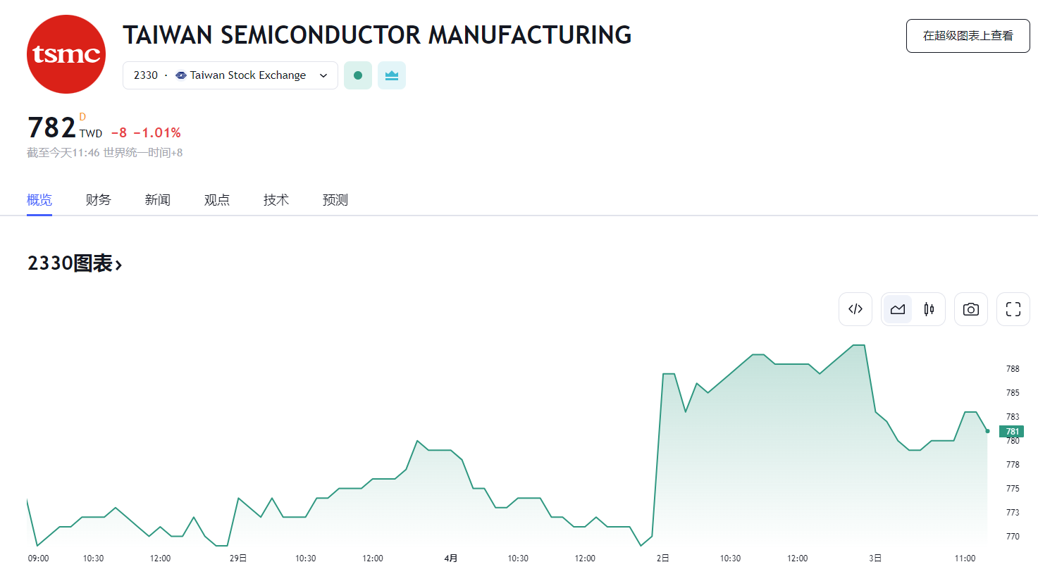 4 月 3 日,中国台湾花莲县海域发生 7.3 级地震,震源深度 12 千米,为 25 年来最大规模地震。台股明显走跌,其他亚太股市也多数低开;台积电早盘也跟着下滑,下跌 1.02%。同日,中国服务业 PMI 连续 15 个月扩张;欧元区制造业 PMI 创三个月新低;特斯拉交付量大跌股价下挫近 7%;贵州茅台去年总营收突破千亿。
