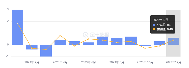 美国人口普查局公布最新“恐怖数据”,美国 12 月份零售销售额环比增长 0.6%,是前值 0.3% 的两倍,超出市场预期的 0.4%,创三个月最大增幅。