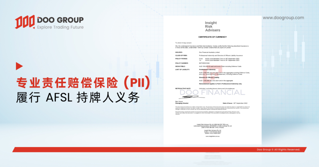 9 月,Doo Group 旗下品牌 Doo Financial Australia Limited 已成功向劳合社( Lloyd’s of London )特定承保人为其主体购买专业责任赔偿保险( PII ),履行其作为澳大利亚金融服务牌照( AFSL )持牌人的义务。