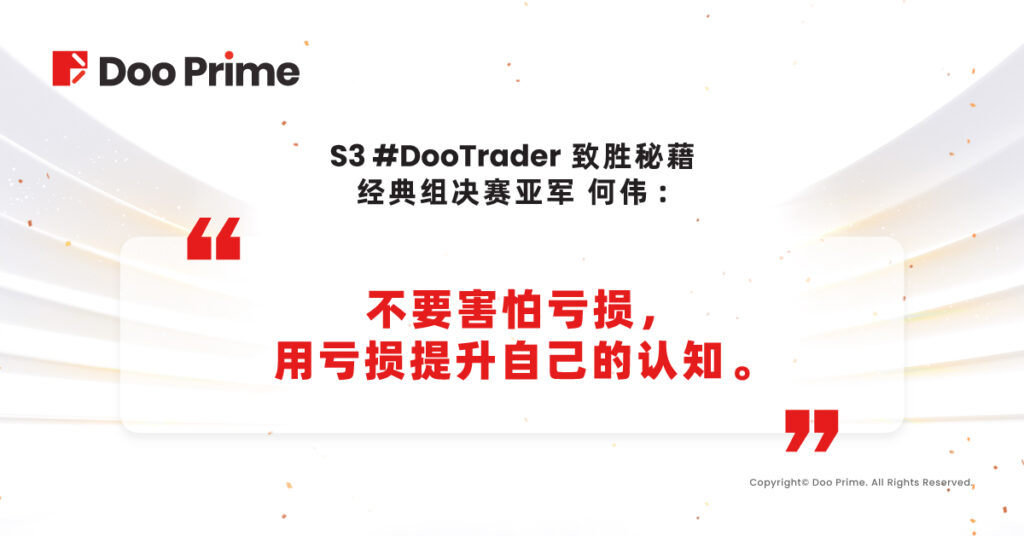 Doo Prime我们举办 #DooTrader 交易大赛的目的就是发掘像您这样优秀的交易员,我们知道还有很多交易者,他们还在摸索和亏损中,您对他们有什么建议吗?