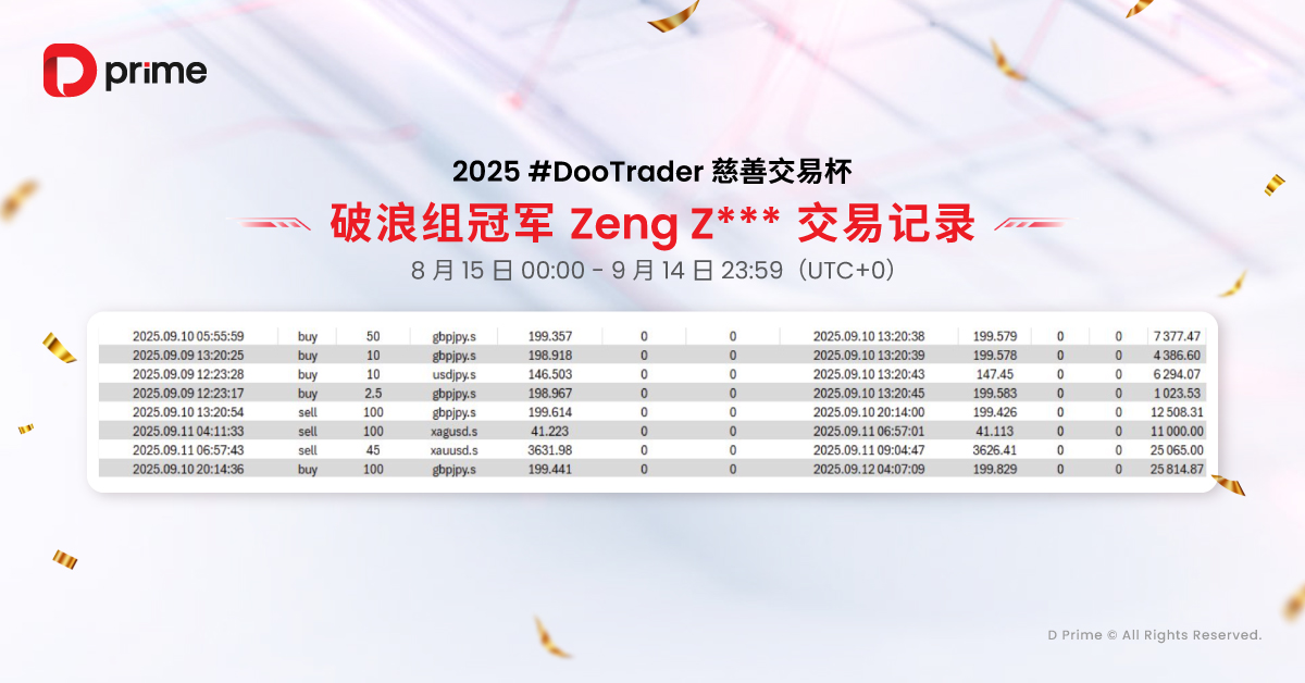 值得关注的是,2025 #DooTrader 慈善杯交易杯不仅是一场较量,更是爱心的传递。每当您在比赛中完成 1 手交易,D Prime 都将代表您捐出 0.1 美元,帮助改善贫困儿童的教育条件,让您的每一笔交易助力点亮更多孩子的未来。