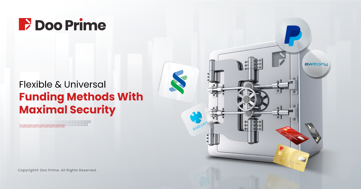 With Doo Prime’s capital competency and risk management technology, it has granted us the opportunity to deliver the finest trading experience – and this includes various funding methods. Under the strict authorization and supervision of multiple financial authorities around the world, Doo Prime always prioritizes the safety of our clients’ funds, ensuring that clients are able to deposit and withdraw funds seamlessly.