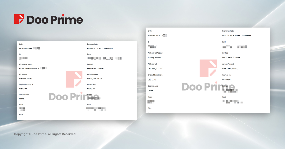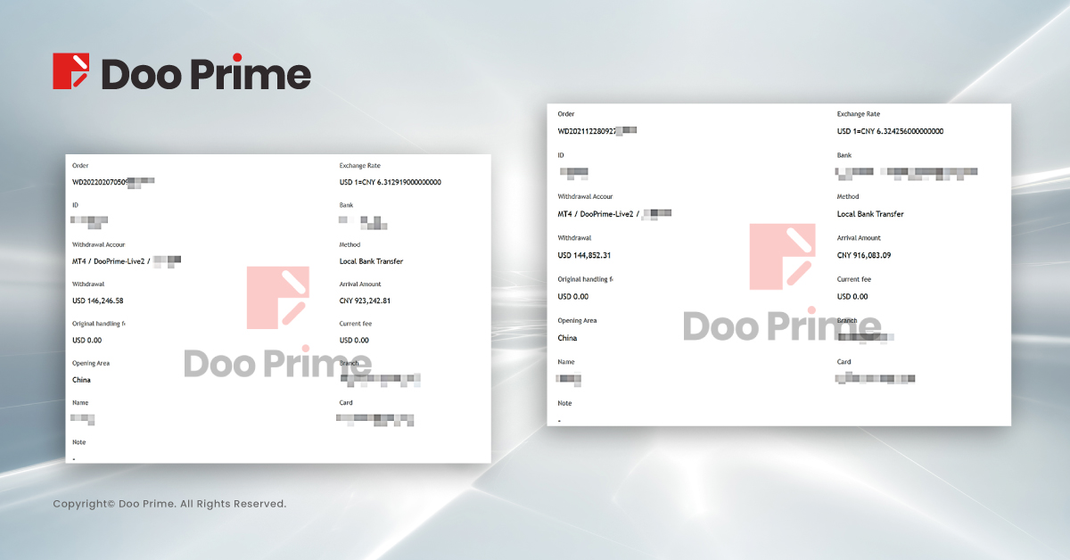 As a comprehensive and leading online broker, Doo Prime is well aware of the importance when it comes to depositing and withdrawing funds for clients. In the years ahead, we will continue to strive in providing clients with a safer, more convenient, and efficient deposit and withdrawal experience, while upholding our values as promised to our clients.