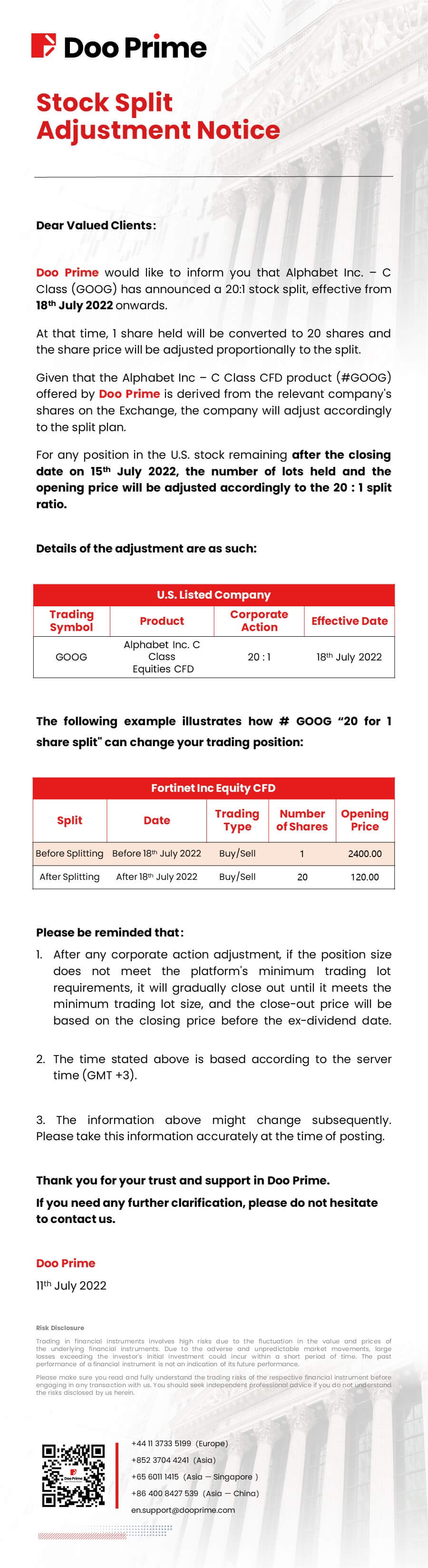 2022-07-12 | CFDs , Securities , Stock Split Adjustment