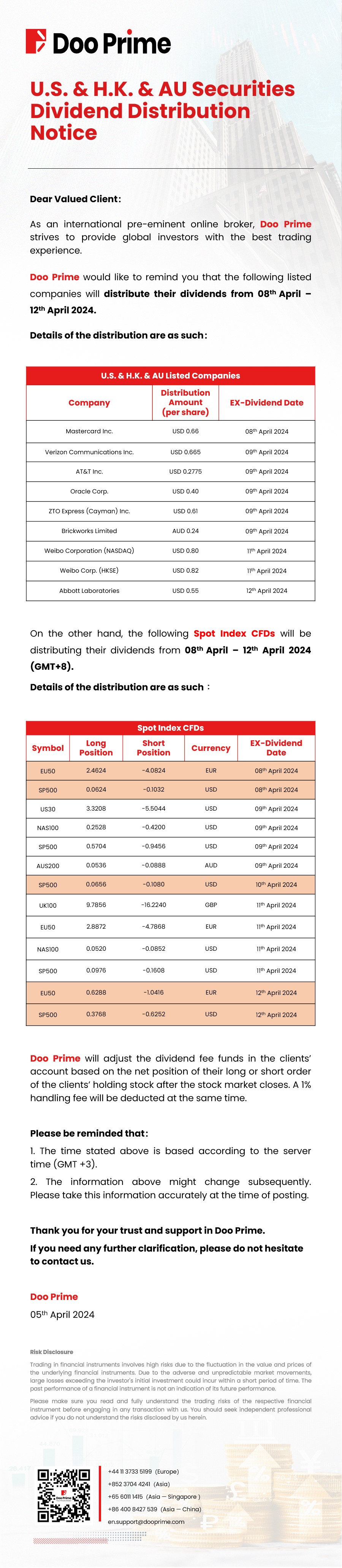 2024-04-08 | Dividend Distribution Notice , English , Securities , Trading Schedule