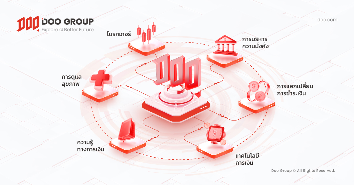 ด้วยการพัฒนาร่วมกันในทุกธุรกิจ Doo Group ไม่เพียงแต่มีวิธีการลงทุนทางการเงินที่หลากหลายและโซลูชั่น FinTech ที่ล้ำสมัยเท่านั้น แต่ยังรวมการดูแลสุขภาพเข้ากับเทคโนโลยีทางการเงินอีกด้วย เพื่อให้มั่นใจว่าลูกค้าของเราจะมีคุณภาพชีวิตที่ดีและมีสุขภาพที่ดี