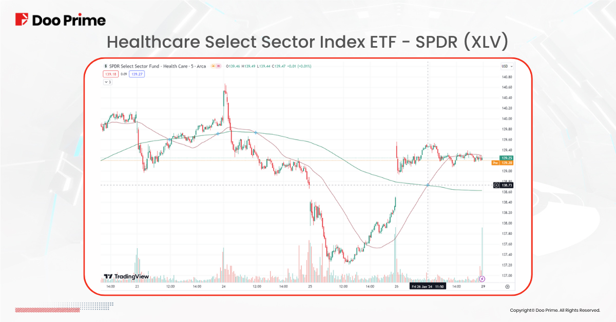 นับตั้งแต่ต้นเดือนมกราคม หุ้นกลุ่ม Healthcare หลายแห่งได้แสดงตัวบ่งชี้ทางเทคนิคขาขึ้นที่เรียกว่า “golden cross” โดยที่ค่าเฉลี่ยเคลื่อนที่ 50 วันเพิ่มขึ้นเหนือค่าเฉลี่ยเคลื่อนที่ 200 วัน แนวโน้มนี้รวมถึงดัชนีภาคการดูแลสุขภาพที่เลือก ETF – SPDR (XLV) ซึ่งติดตามหุ้นด้านการดูแลสุขภาพในสหรัฐฯ ที่ได้รับการคัดเลือก 64 ตัว โดยมีมูลค่าตลาดเฉลี่ย 33 พันล้านดอลลาร์สหรัฐ