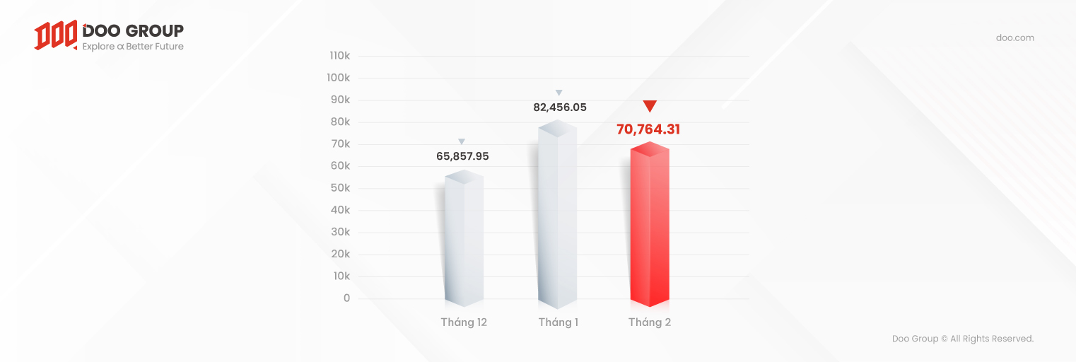 Hoa Kỳ đã công bố hàng loạt dữ liệu kinh tế chính trong tháng 2, và điều đặc biệt là, những con số này đều vượt mức mong đợi của thị trường. Chính vì thế, các báo cáo đã được đón nhận một cách tích cực. Trong lúc này, khi tâm lý ngại rủi ro đang tăng cao, các nhà đầu tư đều ở trong trạng thái “chờ đợi” để đón xem những động thái mới nhất trên thị trường. Bởi lẽ đó mà khối lượng giao dịch của Doo Prime đã giảm nhẹ trong tháng 2.