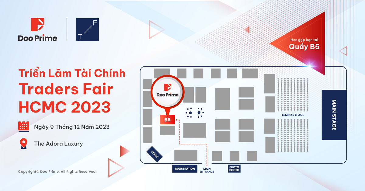 Nhằm hỗ trợ các nhà giao dịch địa phương trong hành trình đạt được đỉnh cao tài chính, Doo Prime sẽ có mặt tại Quầy B5 với đội ngũ chuyên gia song ngữ. Tại đây, chúng tôi sẽ trưng bày các dịch vụ tài chính tiên tiến nhất, cũng như hỗ trợ giải đáp mọi thắc mắc và phản hồi của Quý khách hàng. Đồng thời, đây cũng là dịp để chúng tôi nhấn mạnh nỗ lực toàn cầu hóa của công ty và chia sẻ những thông tin cập nhật về các phát kiến trong ngành cho các khách hàng tại Việt Nam.