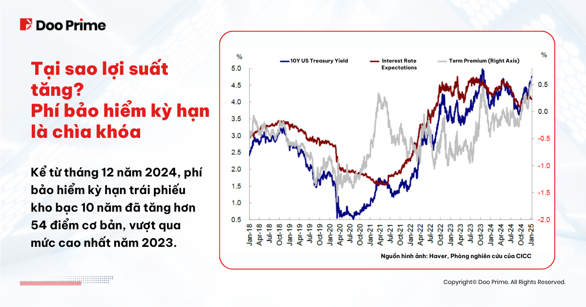 Phần Bù Rủi Ro Kỳ Hạn: Đây là khoản lợi nhuận bổ sung mà nhà đầu tư yêu cầu để nắm giữ trái phiếu dài hạn thay vì ngắn hạn, nhằm bù đắp các rủi ro như lạm phát và sự bất ổn chính sách. Dữ liệu gần đây cho thấy phần bù này đã tăng mạnh, do nguồn cung trái phiếu gia tăng và nhu cầu bồi thường lớn hơn trong bối cảnh kinh tế và chính sách bất ổn.