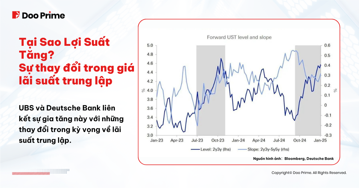 Một số nhà phân tích, bao gồm UBS và Deutsche Bank, cho rằng sự gia tăng lợi suất phản ánh sự thay đổi trong định giá lãi suất trung tính thay vì phần bù rủi ro kỳ hạn. Deutsche Bank nhấn mạnh rằng các lãi suất tương lai (ví dụ: 2y3y) đã tăng mà không có sự dốc lên của đường cong lãi suất tương lai (ví dụ: 2y3y – 5y5y), cho thấy kỳ vọng về lãi suất dài hạn đang thay đổi.