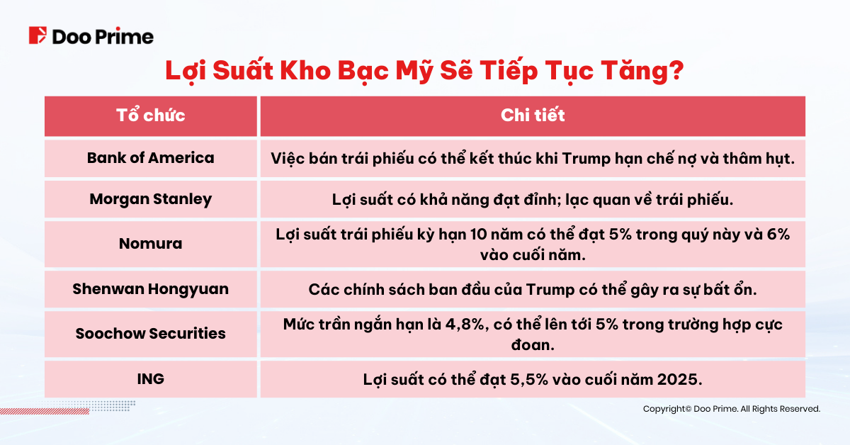 Mặc dù dữ liệu lạm phát trong tháng 1 đã tạm thời làm chậm đà tăng của lợi suất, triển vọng vượt qua hoặc đạt mốc 5% vẫn là chủ đề nóng. Các quan điểm chuyên gia bao gồm: