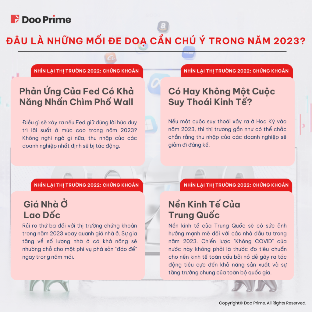 2022 được đánh giá là một năm khá ảm đạm đối với cộng đồng đầu tư trên thế giới. Cụ thể, thị trường đã được dịp chứng kiến toàn cảnh những nhân tố cấu thành thị trường giá xuống trong năm 2022, khi tình hình lạm phát tăng vọt lên mức cao nhất trong vòng hơn 40 năm và Fed liên tục nâng lãi suất mạnh. Những điều kiện trên đã góp phần khiến giá cổ phiếu ở hầu hết các lĩnh vực chìm trong sắc đỏ.